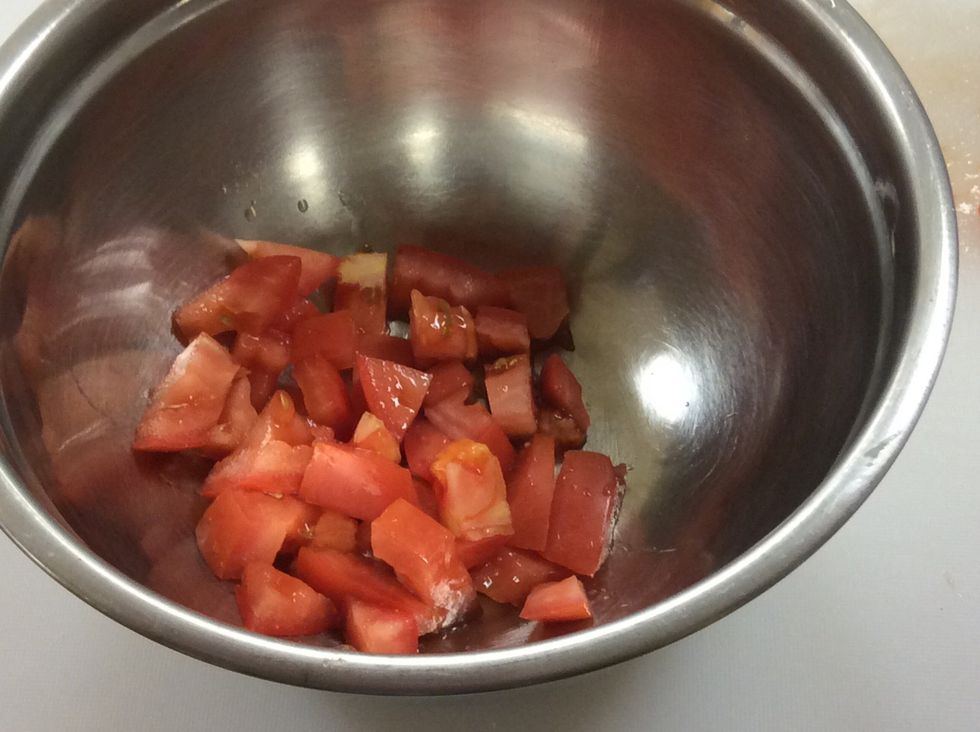 Cross cut the tomato to make it a dice.