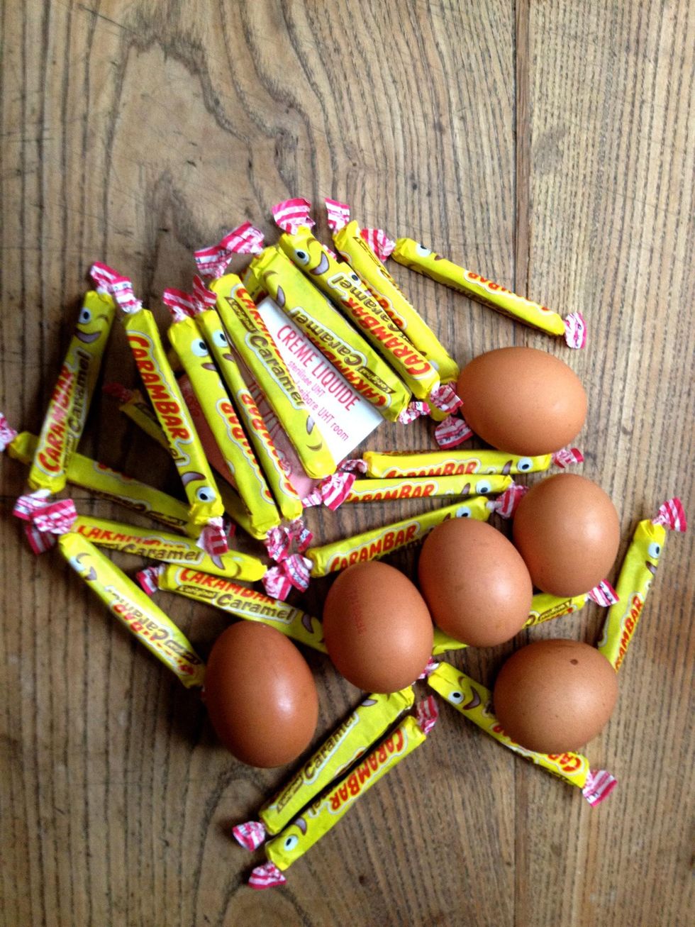 Melt the carambars with cream over low heat in a double boiler, stirring occasionally so that the caramel does not stick to the bottom of the pan.