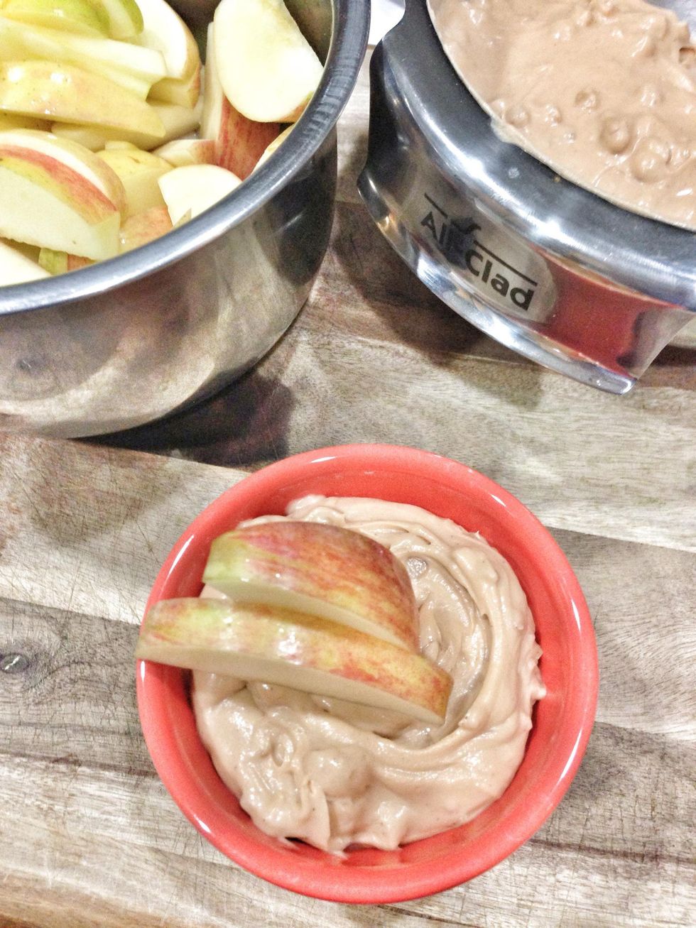 Remove the dip from the fridge and serve alongside apple slices. Enjoy!