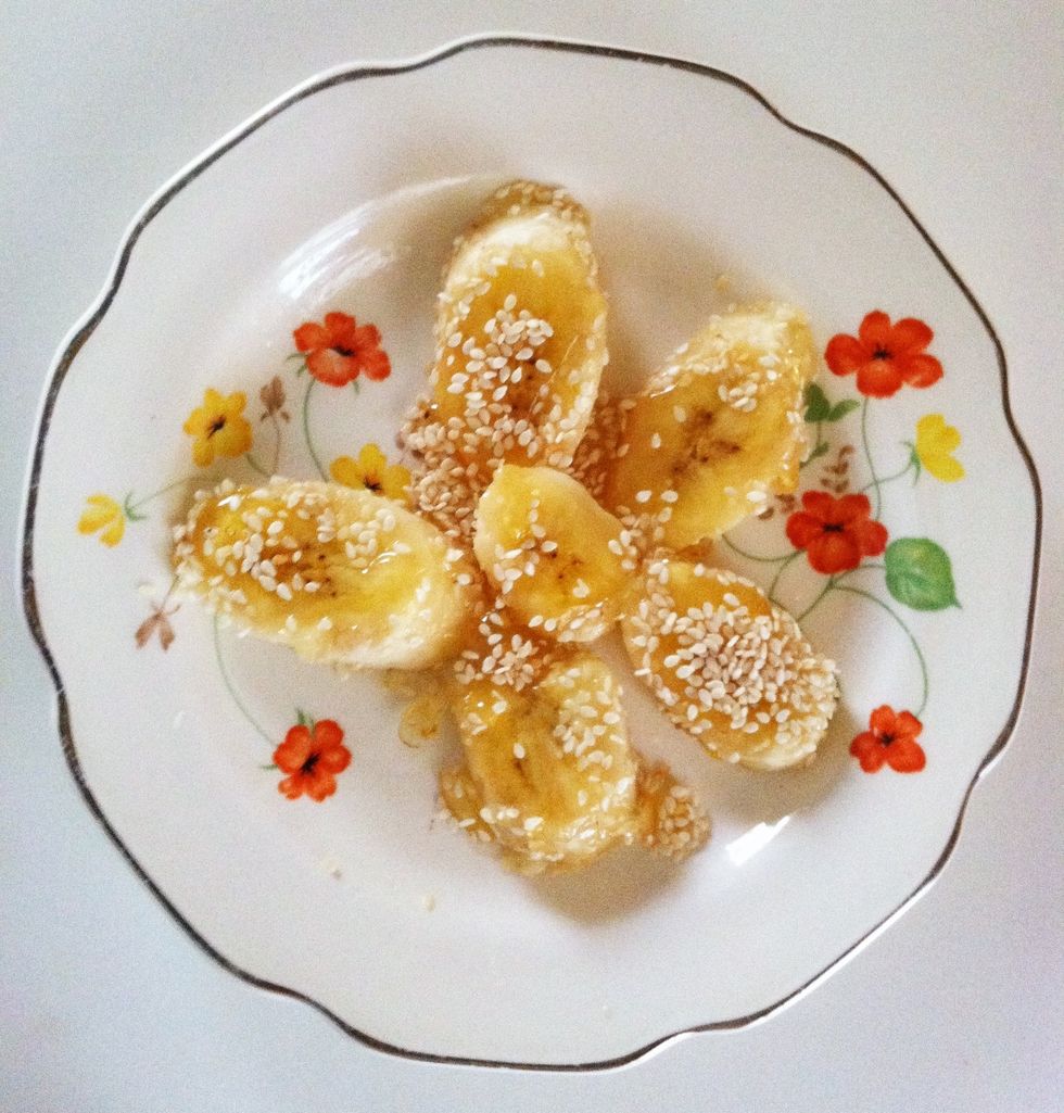The crunchiness of the caramel with sesame seed balances nicely with the smoothness of the bananas. Enjoy!
