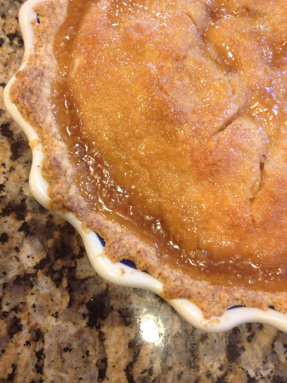 While its baking, mix together equal parts of (3TB) brown sugar, softened butter and white karo syrup. Once the pie is nearly finished, you will spoon this on top
