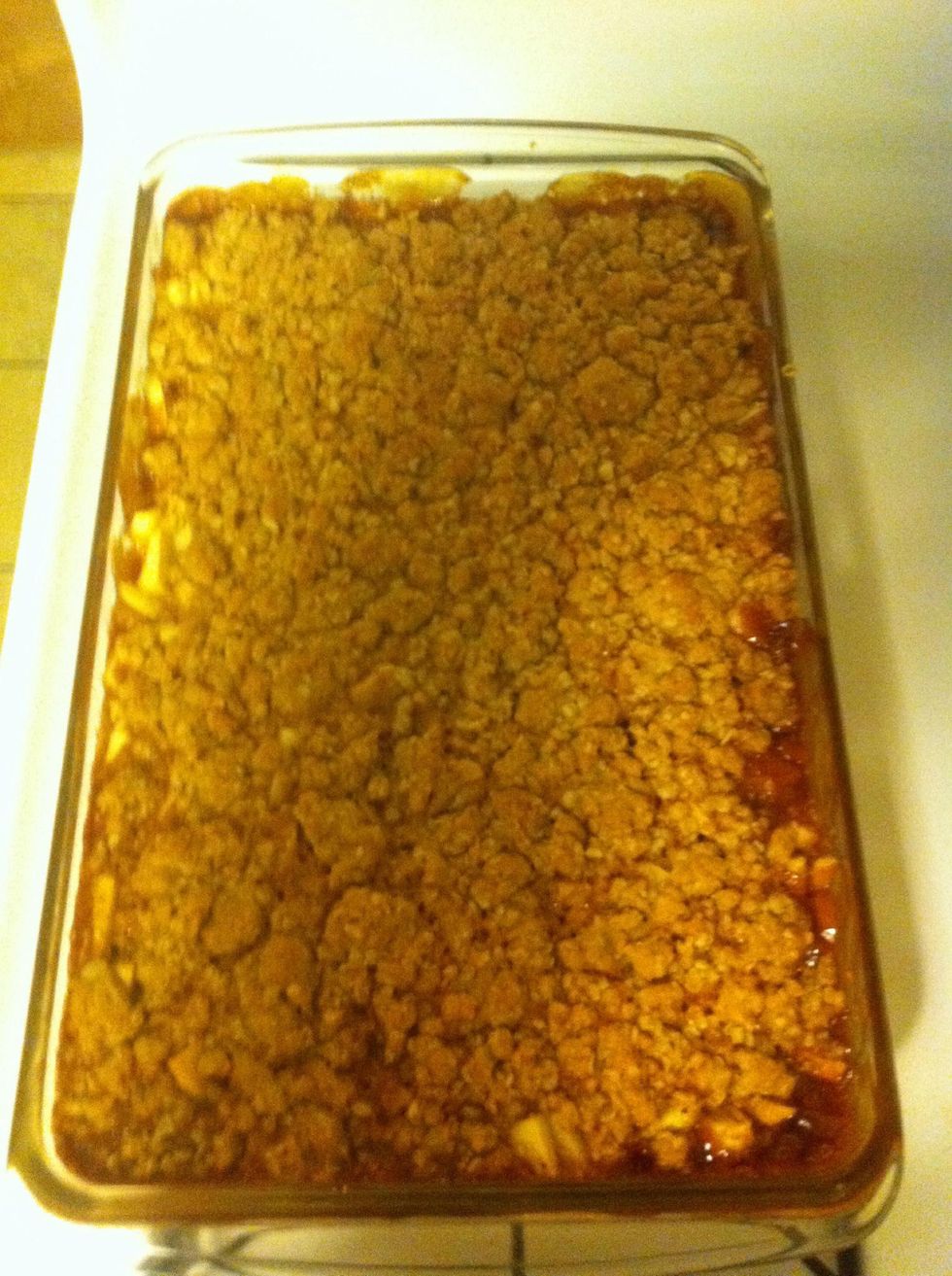 Sprinkle left over crumbly mixture over the top. Bake for 20-25 minutes and then left cool completely before cutting into