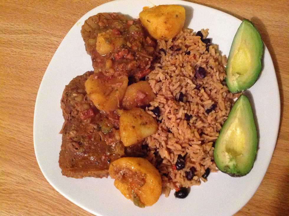 This is a Puerto Rican recipe which has a very deep mix of flavors without taking away from the beefy stew like essence. Very easy to make friends will love trying something new. See PR Rice recipe.