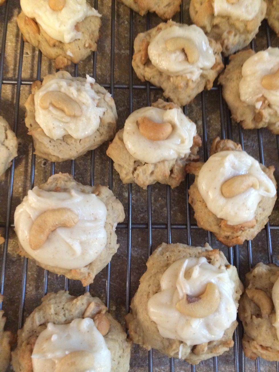 Drop by rounded spoonfuls 2 inches apart on parchment paper - I use a permanent one that can be washed and reused Bake @ 375 degrees for 8-10 minutes or until lightly browned - cool on wire rack