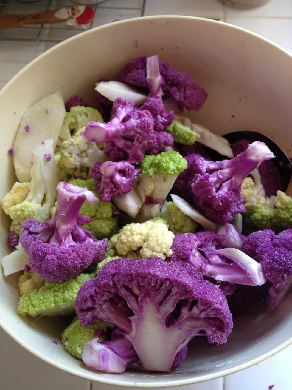 Today I am using these colorful cauliflower that I found at the market. Also, I am using two heads of cauliflower and doubling the recipe.