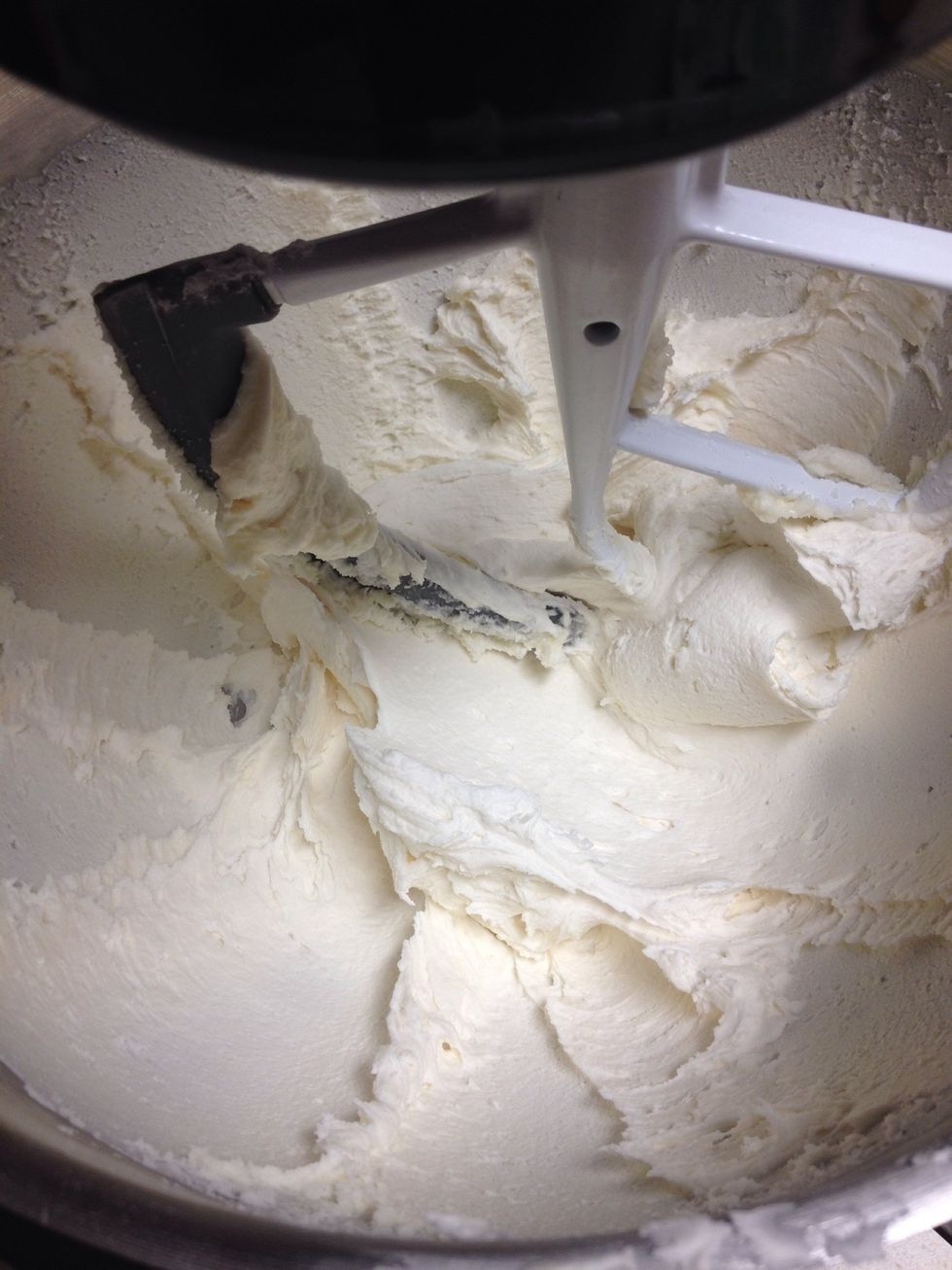 Start adding the milk slowly until you reach the desired consistency and then whip on high until the icing has lightened in color