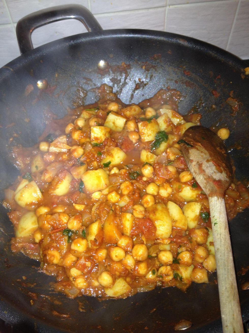 Add your tin of chopped tomatoes, and teaspoon of Chana masala powder.