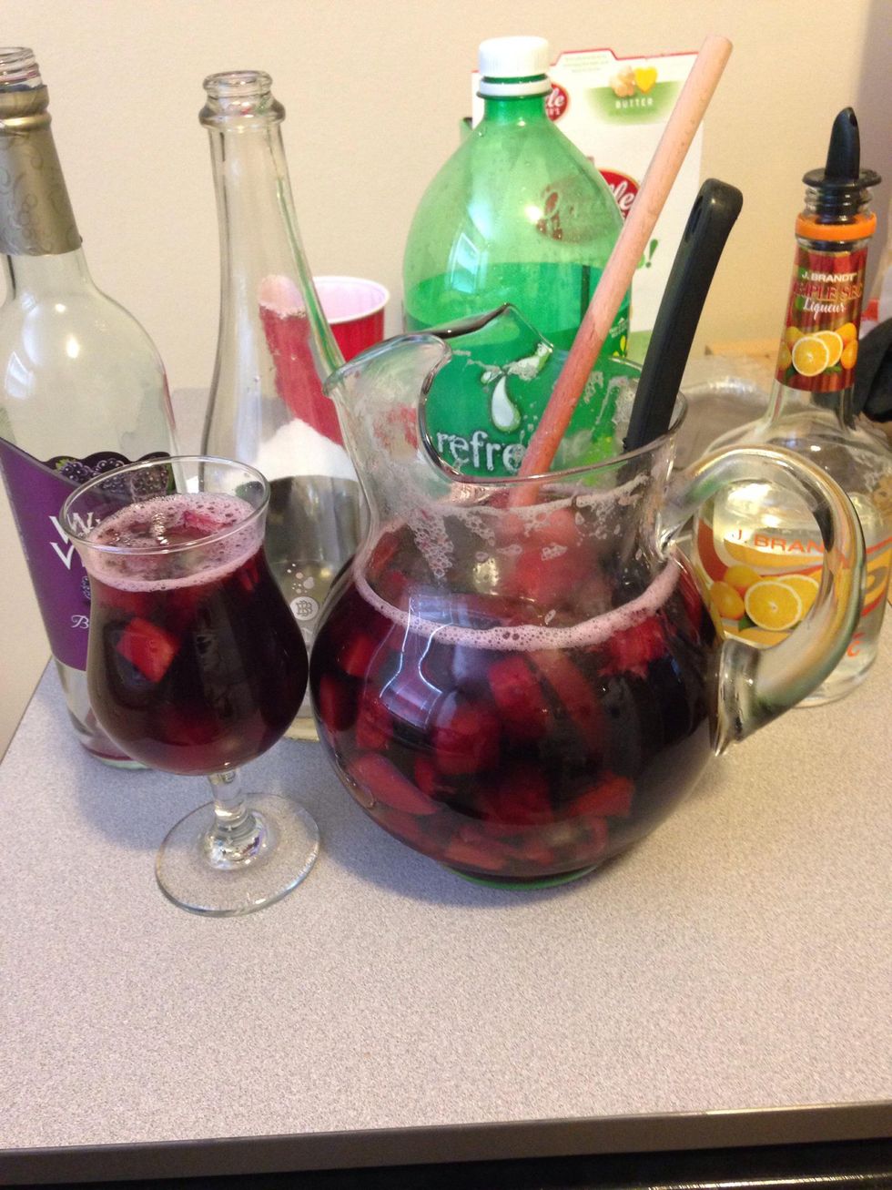 Chill for 24 hours for best results for the fruit to flavor the wine, but it tastes good immediately too. Serve and enjoy!