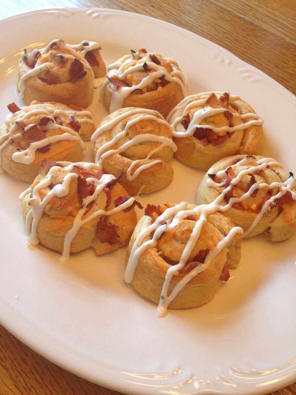 Drizzle ranch dressing across Rollups. I put my dressing in a ziplock bag and cut a small corner of the bag to make it easier to drizzle the dressing on top.
