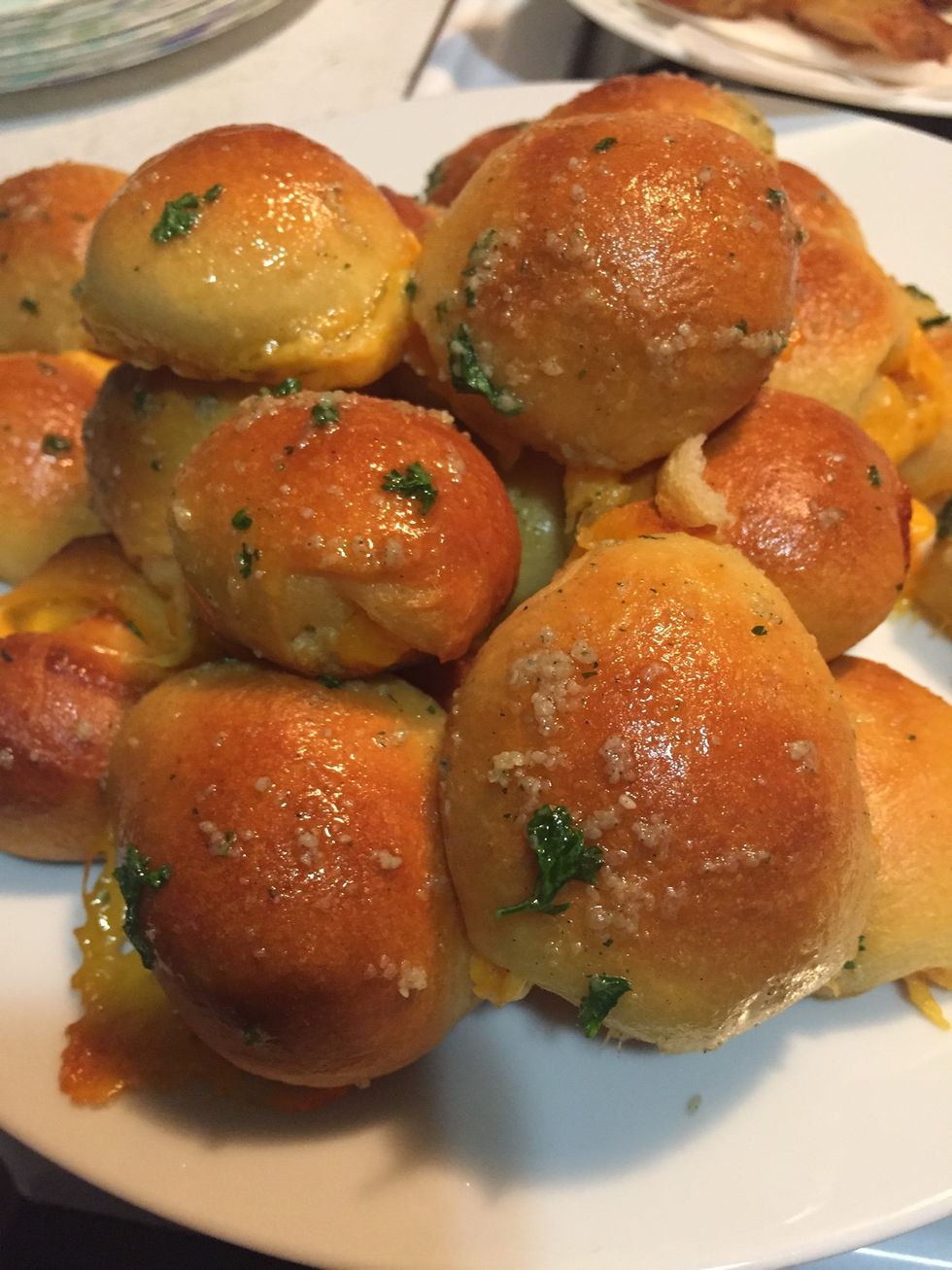 In the microwave, melt butter, garlic salt, and parsley. As soon as the cheese bomb came out from the oven, brush the butter mixture.