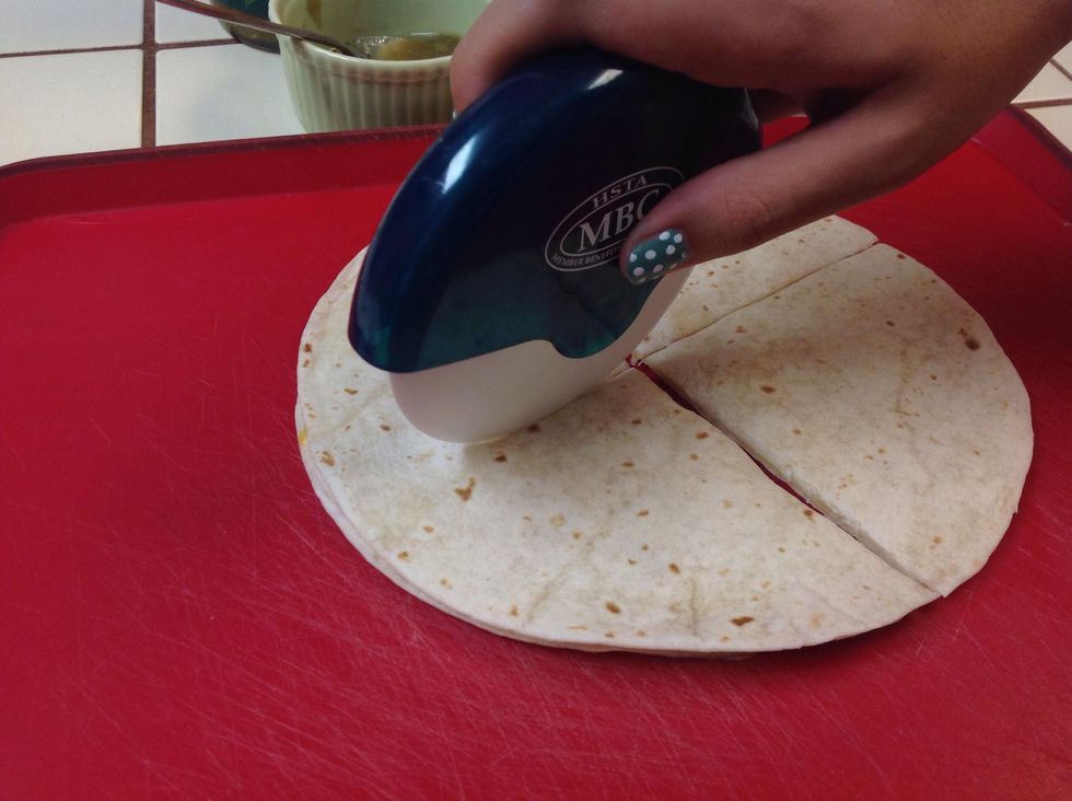 Put the quesadilla onto a cutting board. Be careful, it's hot!