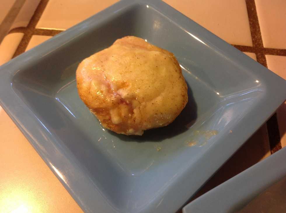 Spray peaches, front & back with spray butter. Set on parchment lined pan.