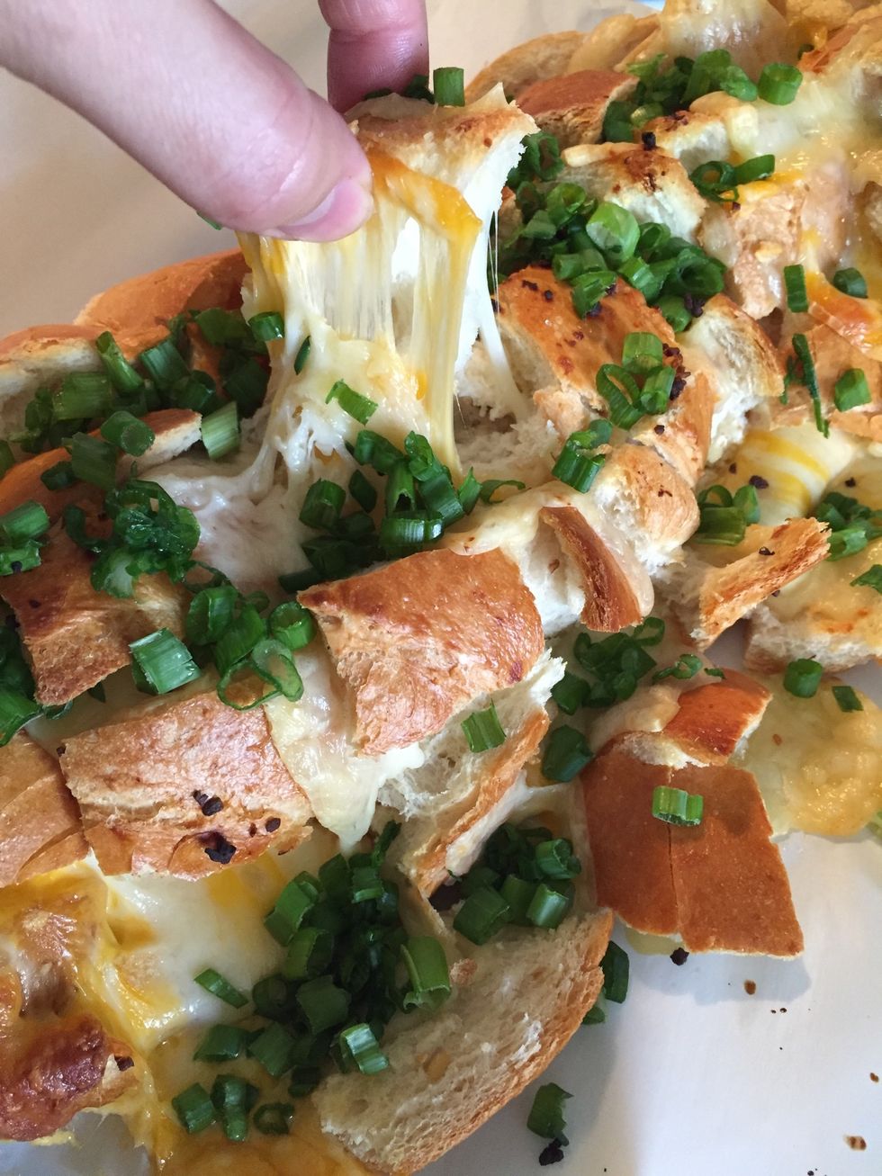 Stuck the cheese between cut line. Don't worry if it look messy caused it will be delicious 😜 baked at 350F for 17-20 min.