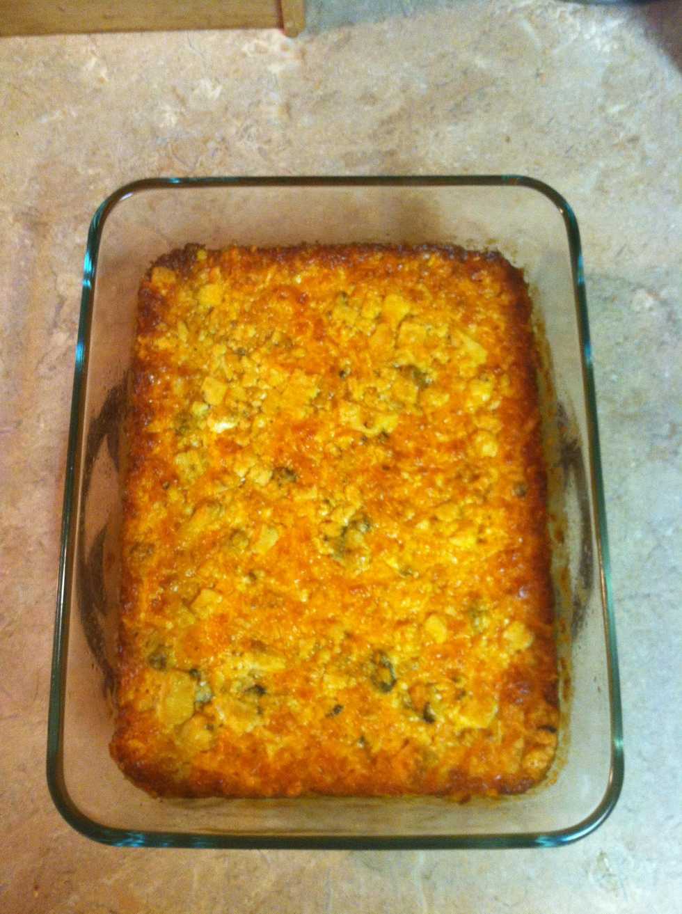 Spread into a 1-1/2 quart casserole dish. Lightly coat with cooking spray.