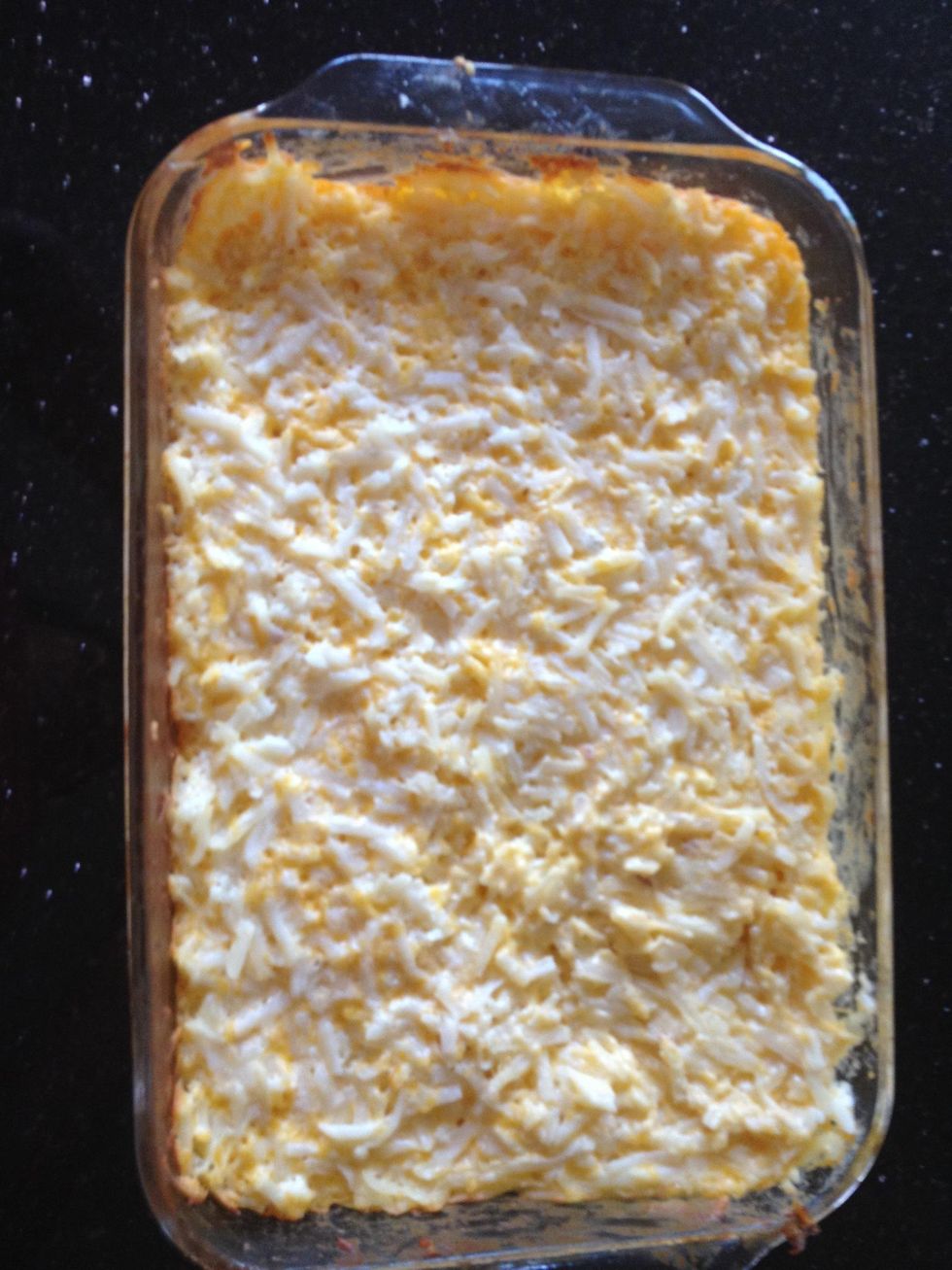 Add shredded cheese to the potatoes. Stir together so cheese is mix in well. SECRET: sometimes I add an additional 1/4 cup of sharp chedder cheese for extra flavor!