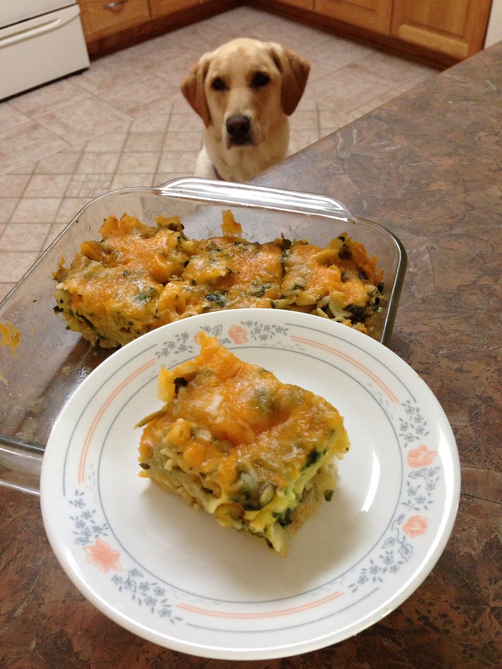 Let set 20+ minutes for easier slicing. Serve warm! Our dog Molly loves cheese. Right now she is wishing she was human.