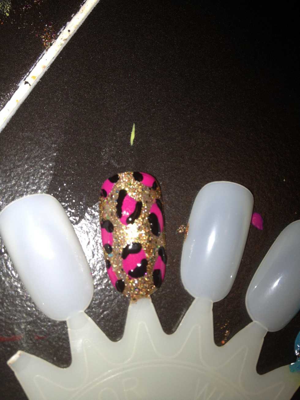 Next I added Twisted Pink by Sally Hansen Xtreme wear. You add the print by using a dotting tool or the brush itself, they don't need to be perfect circles.