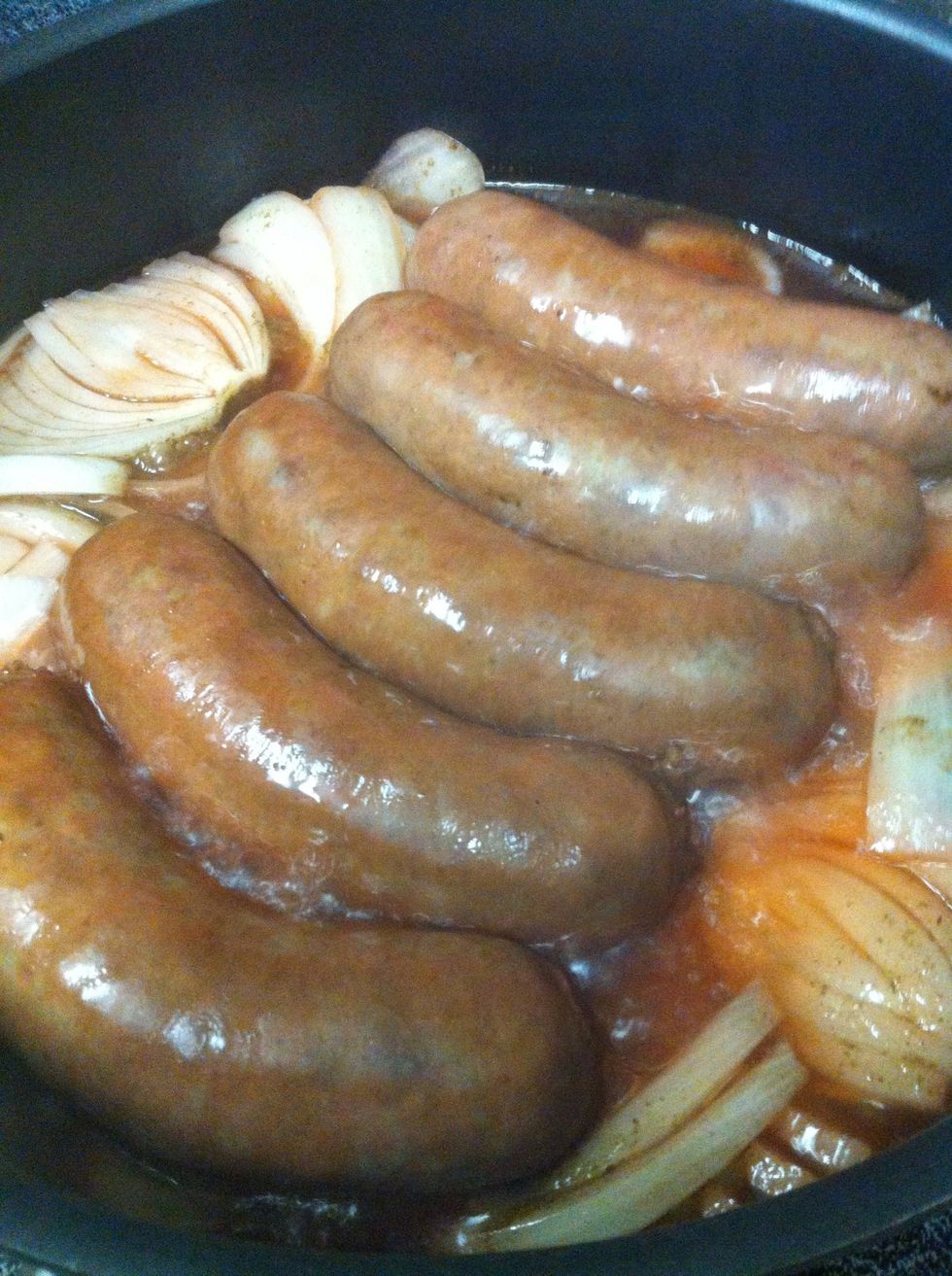 Add dr pepper to the Bratwurst... Only 1/2 the can!