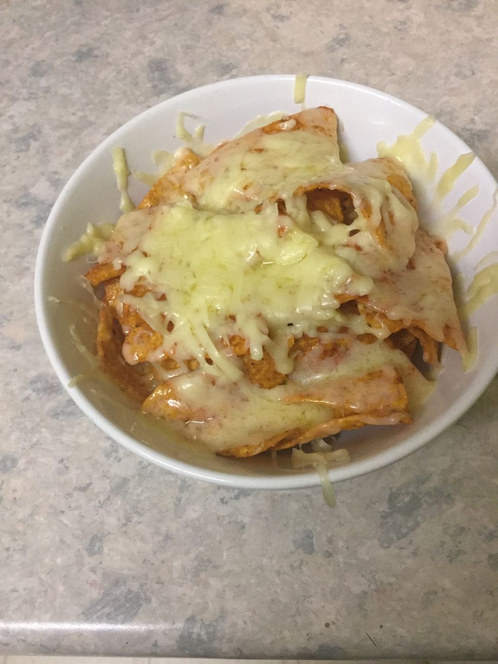 Get some Doritos ( I used salsa flavour which turned out so good!) and put them in a bowl 🍚. Then grate cheeses 🧀 over them .