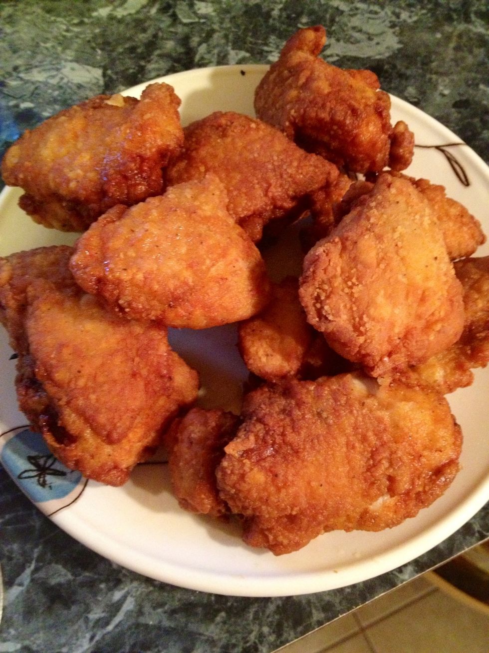 Fry until golden brown and crunchy. Just remember dark meat takes longer to cook than white meat👌😊