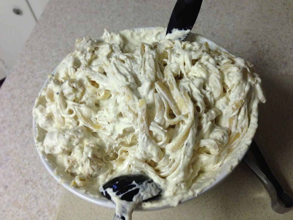 After the sauce cooks for a bit and the cream cheese is almost all the way melted, add the rest of the heavy cream (should have started with a pint). I also add Italian seasoning and salt.