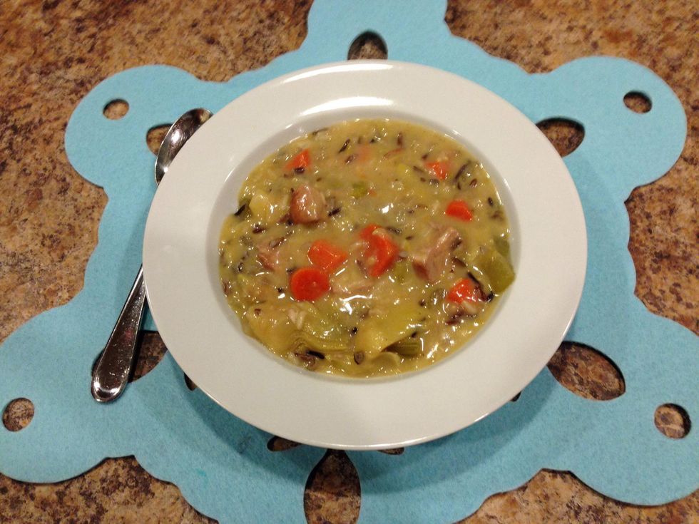 Dish it up and enjoy! This soup usually makes 10-12 good sized servings. I made my version completely gluten free which is easy to do and in the instructions. Total time including prep is 1 1/2 hrs.