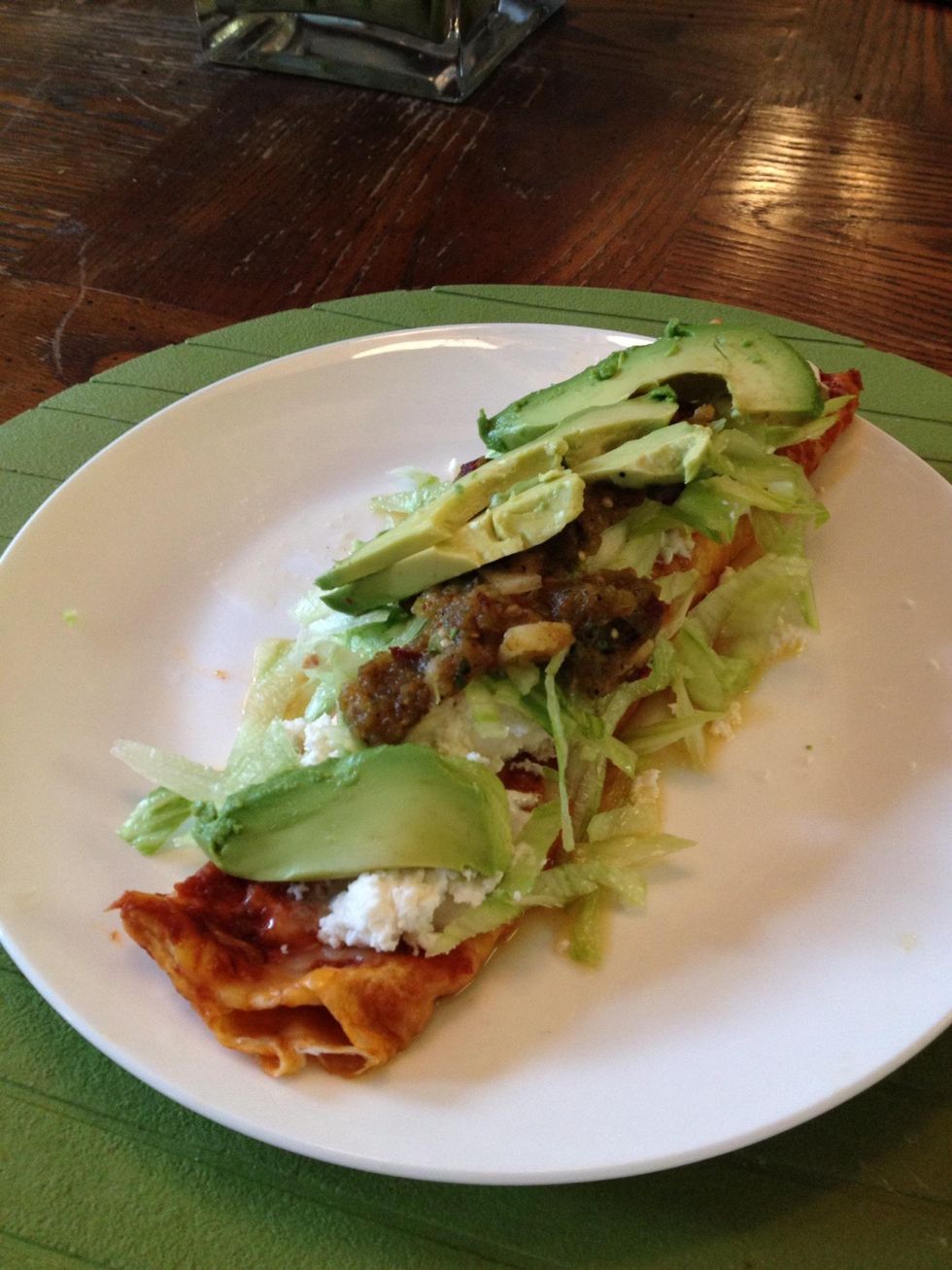 Top it with (starting from bottom layer) sour cream, crumbled cheese ( cotija or queso fresco found in Mexican refrigerated section) lettuce and salsa verde (tomatillo) and avocado :)