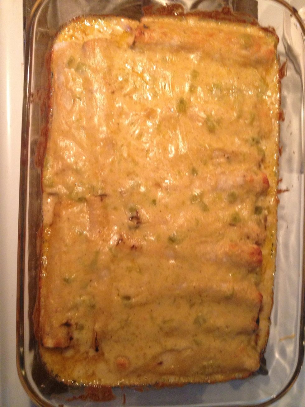 Place them in the baking dish. Seam side down. Pour the cheese mixture all over the top. Bake for 30 min @ 350*.