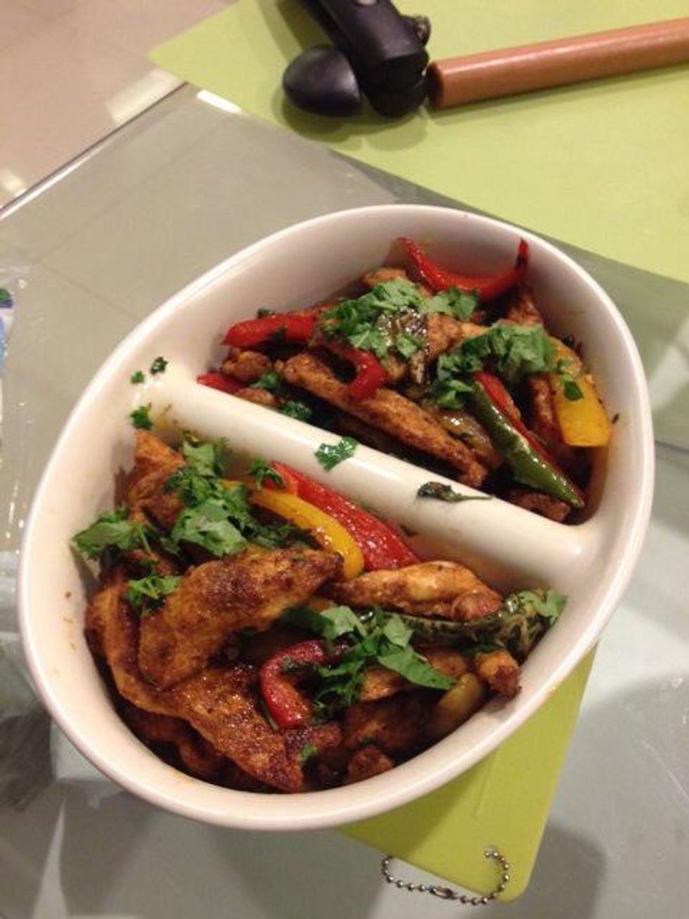 This is the final presentation of my kind of chicken fajitas. Topped with some cilantro.
