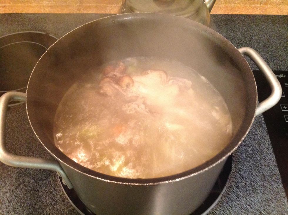 Really simple. Don't make to much of this, just play around with it.I often smoke a chicken in my smoker and then make soup with the broth I make with the carcass the next day.