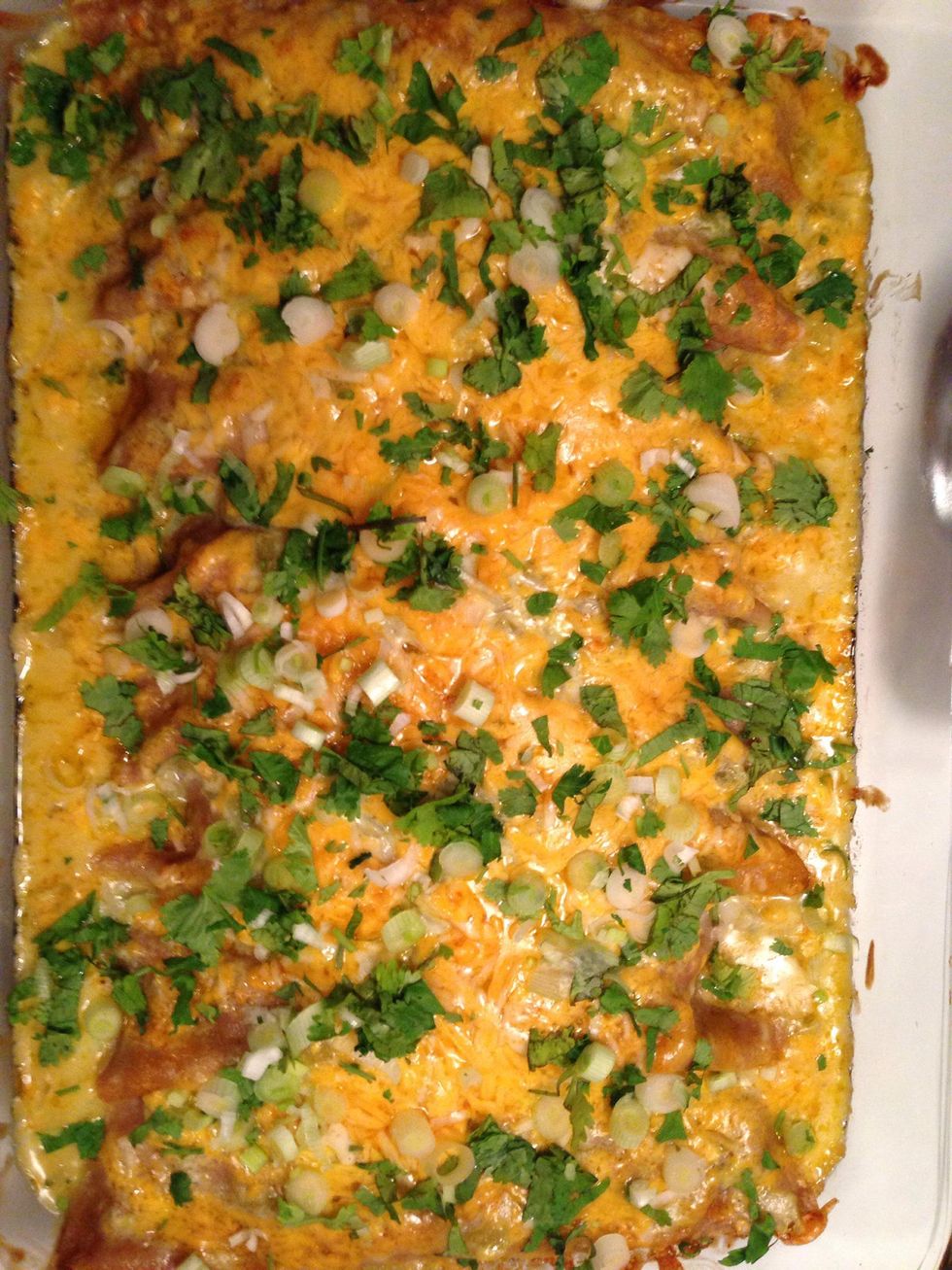 Pour the sauce over the top of the enchiladas.