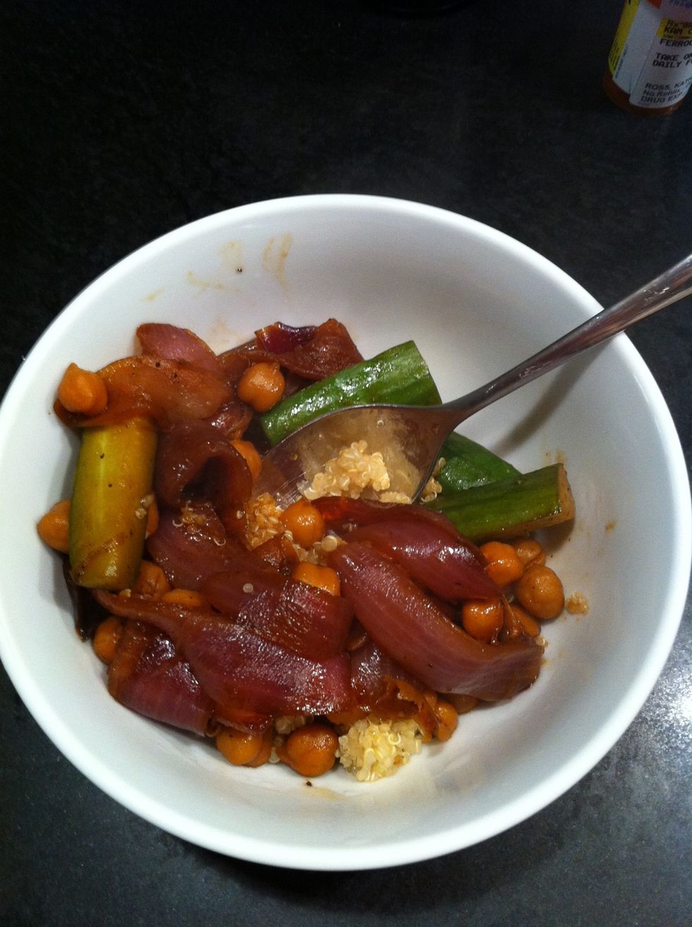 Add chickpeas and reduce heat to medium to reduce soy sauce to a thicker consistency