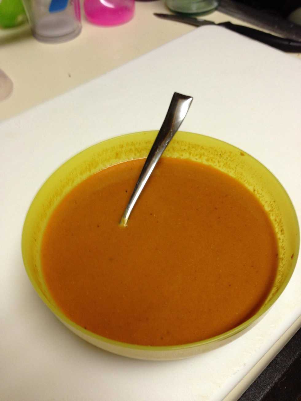 Roast the sesame seeds, peppers, garlic and peanuts on a flat grillAdd all the ingredients into a blender and liquefy for 2 to 3 minutesStainServe on any food