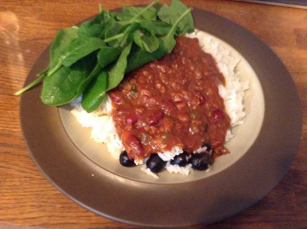Pit the rice/olive mixture onto a plate then pour on the con carne...your DONE