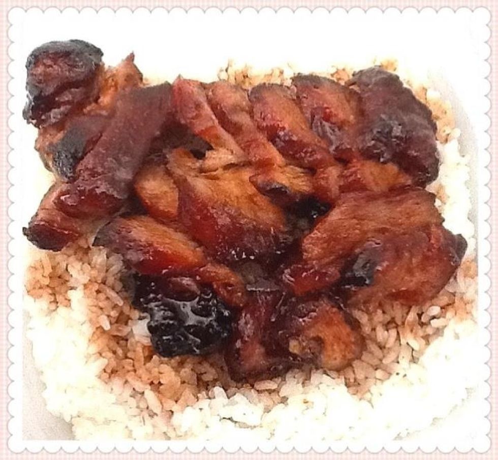 It goes well with white rice. It's the asian/chinese Char Siew Rice. For the sauce that goes over the Char Siew Pork and rice, please go to next step.