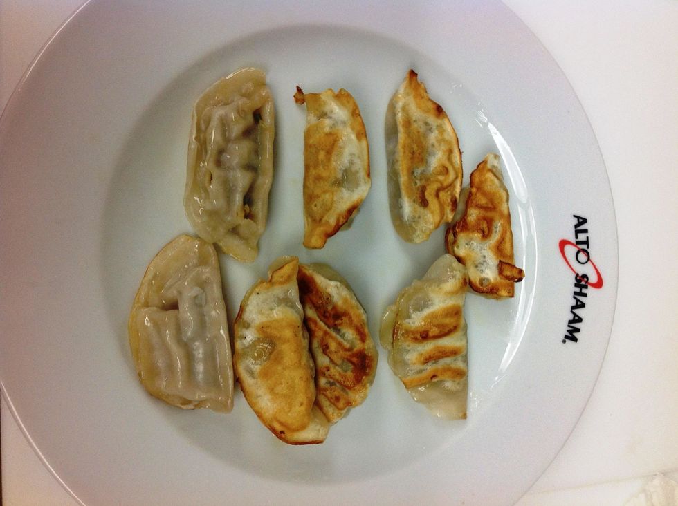 Traditionally dumplings are browned in a pan first.