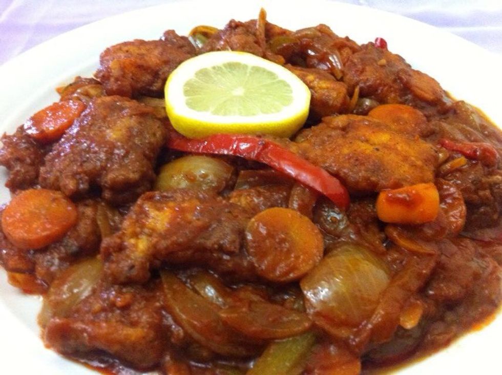 Put the fish into the tomato mixture and stir them well ,, serve it with a white rice if you want