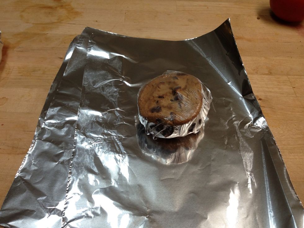 Allow ice cream to soften at room temperature for a few minutes while the cookies are in the freezer.