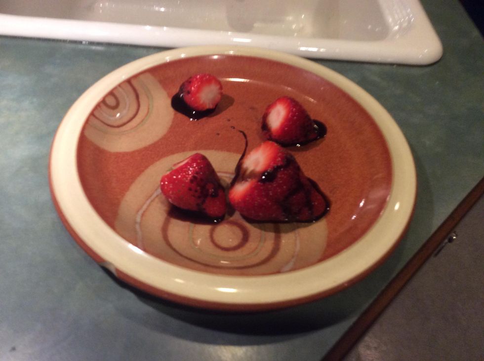 Supplies!Select wanted strawberriesWash strawberries.Cut off the tops of the strawberries. (Optional)Set the strawberries on a plate.Drizzle them with chocolate.Refrigerate until chocolate is firm.Enjoy!
