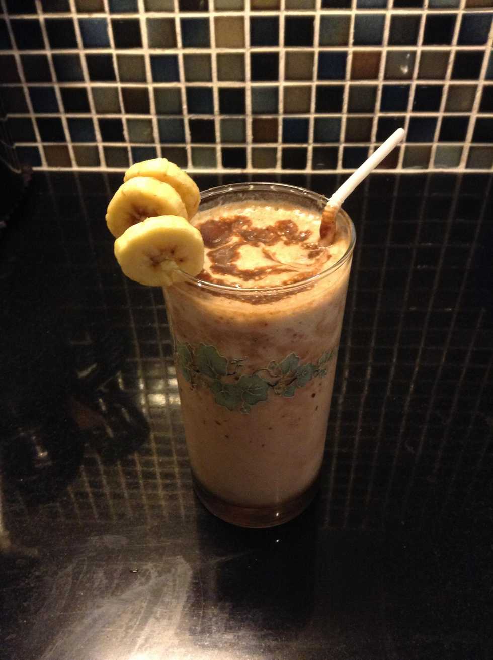 Put everything except for the melted chocolate in the blender and blend. After blending all the ingredients, pour the melted chocolate first into the glass followed by the blended banana That's it!😉