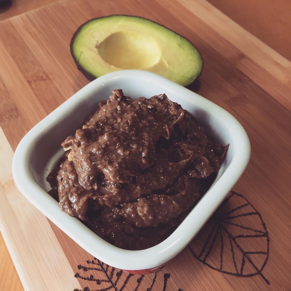 1.0Tbsp Chia2.0 Ripe avocadoes1/4c Honey1.0Tbsp Coconut oil1/4c Chocolate powder1.0tsp Vanilla extract4.0Tbsp Milk