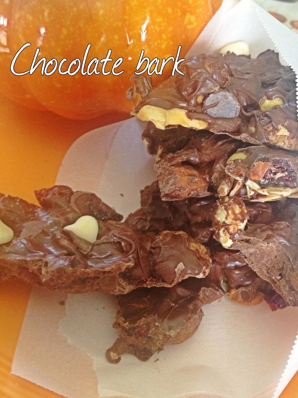 Pour melted chocolate over trail mix.