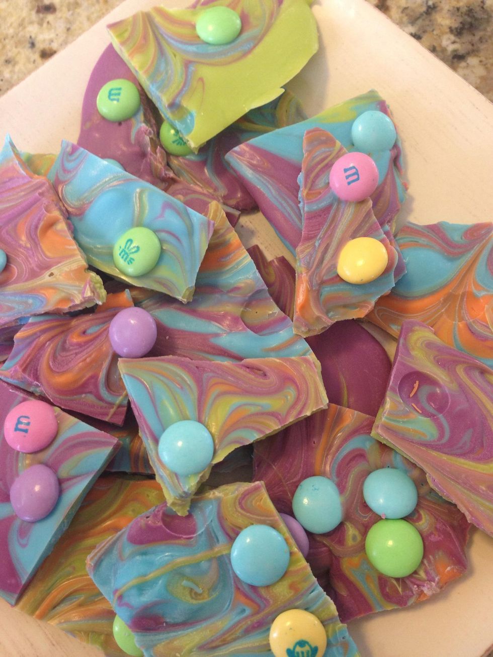 We like to decorate our bark with M&Ms and had a handful left over from Easter.