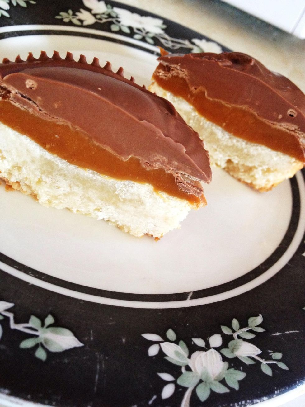 Once chocolate is melted, pour a layer of chocolate over the caramel.