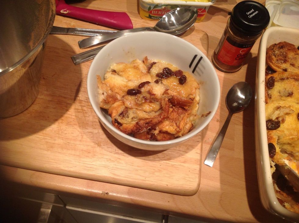 When it's golden and slightly crisp serve hot :) I don't think it needs anything with it but custard is nice if you want to use something