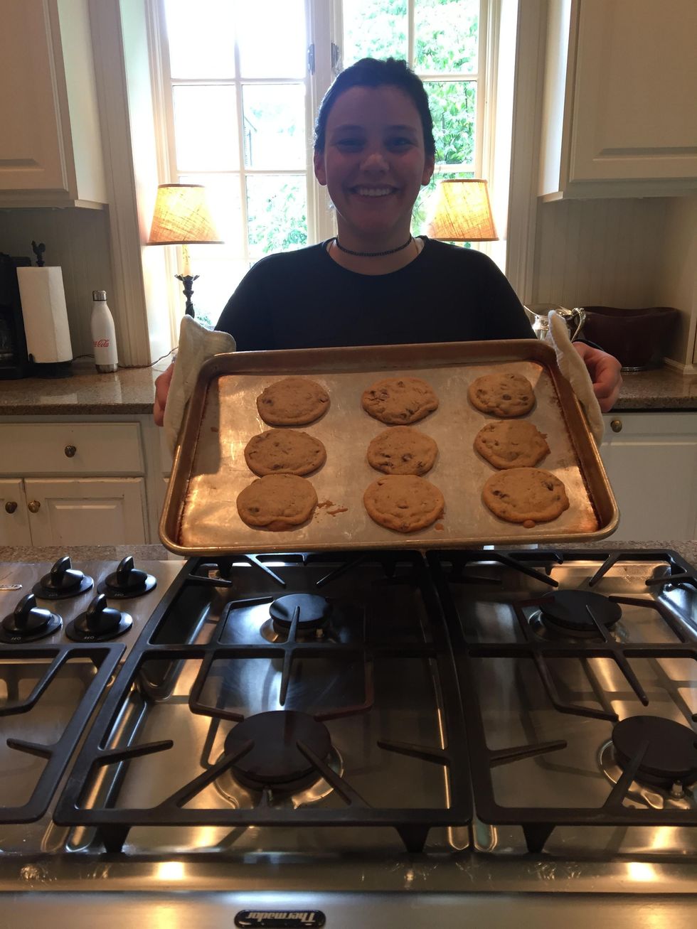 Put cookie dough in oven and bake for around 10 minutes or until golden brown.
