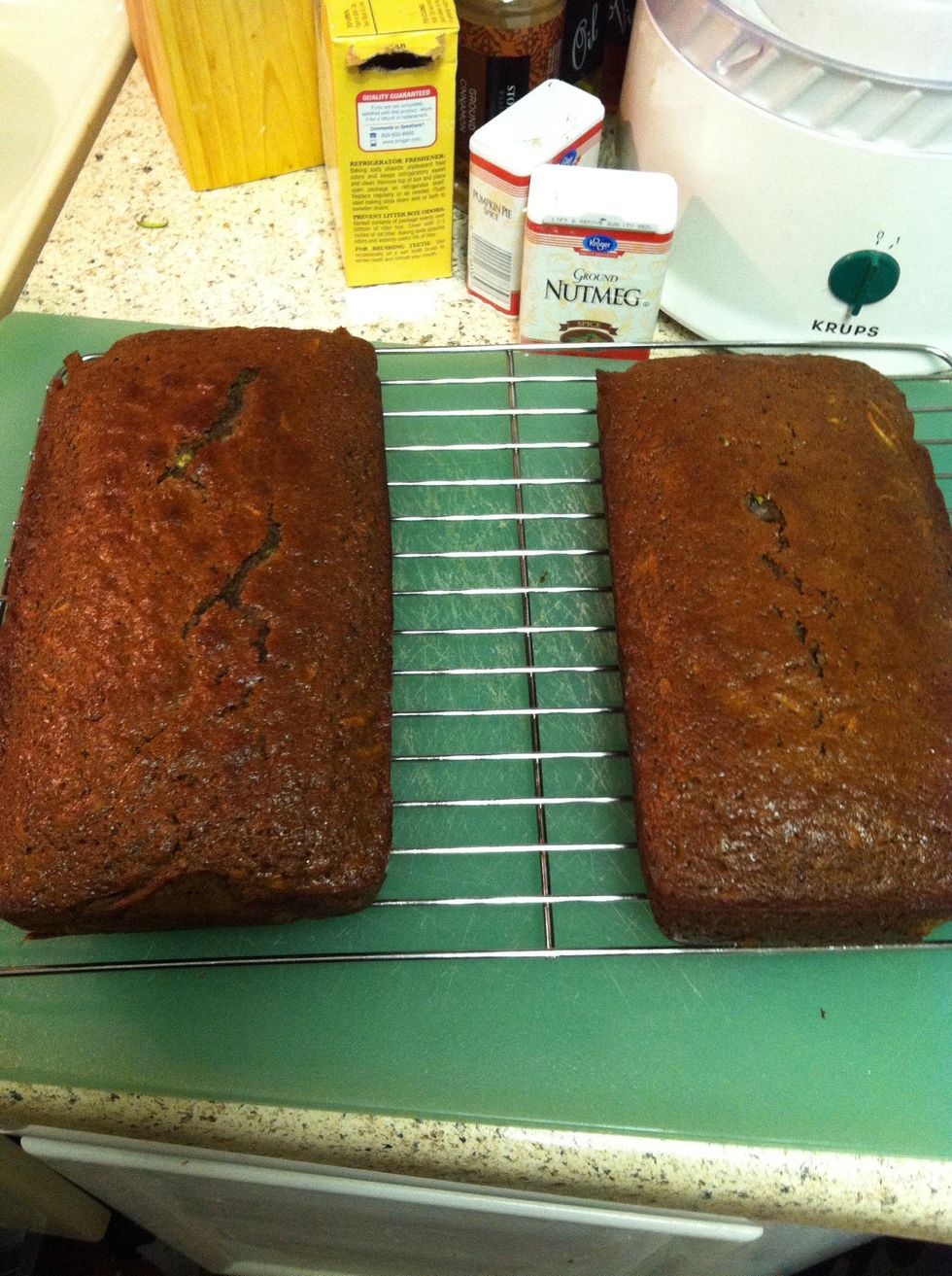 Add the zucchini. Add the dry mixture and fold in till smooth.