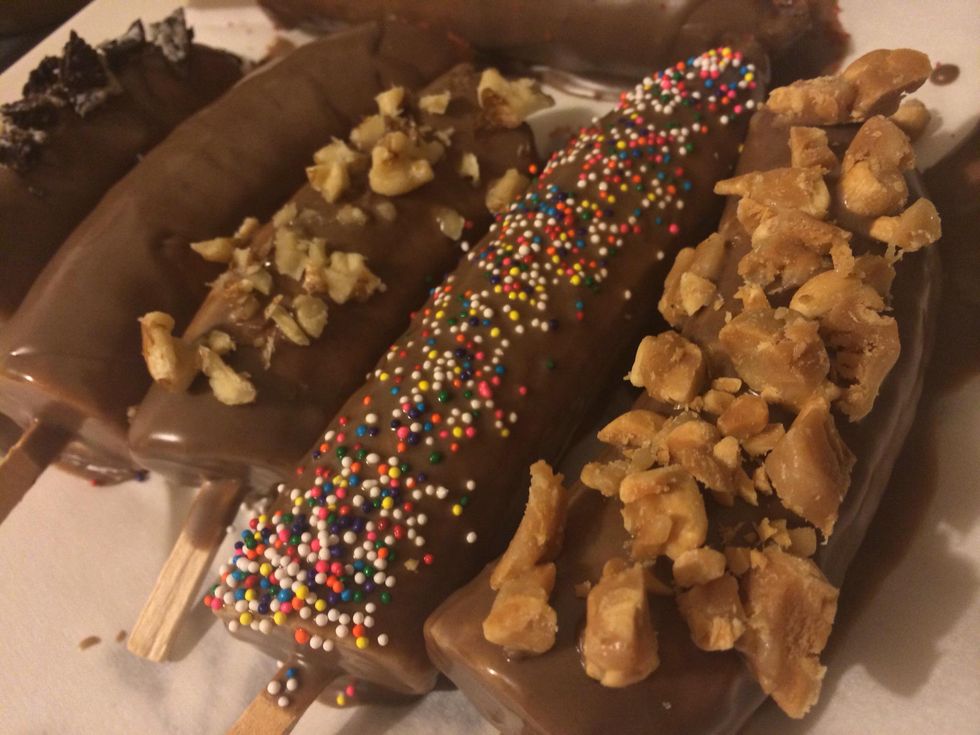 Cover the bananas in chocolate