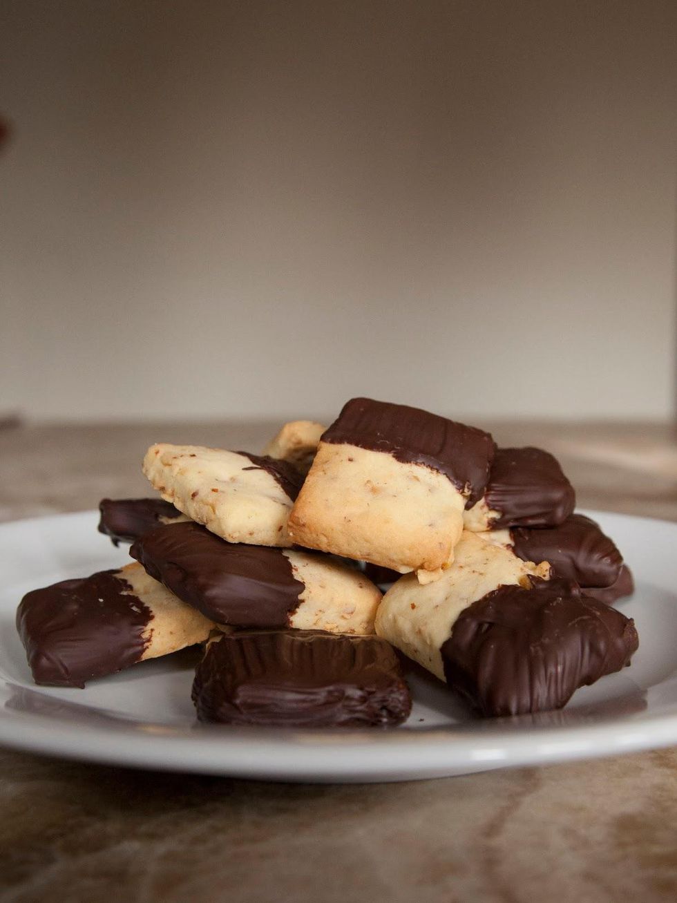 Here's how to do the chocolate dipping. Melt your chocolate either in a Pyrex bowl sitting in a heated pan of water on the stove, or quick and dirty, a few seconds (30 perhaps) in the microwave.