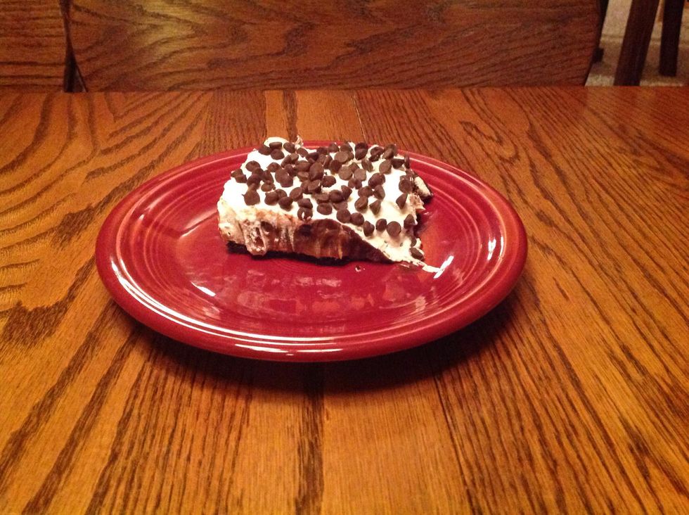 Spread pudding over the previous cream cheese layer and then put in refrigerator for 5 minutes.